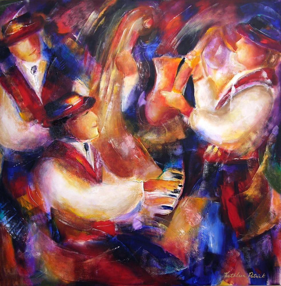 Bold color, dynamic shapes, and powerful compositions define the jazz paintings of Chicago artist Kathleen Patrick.